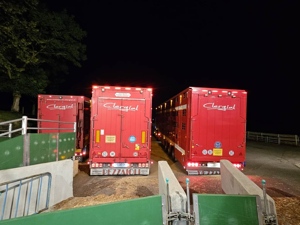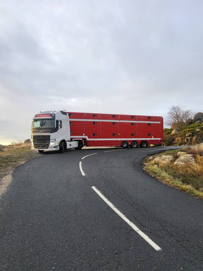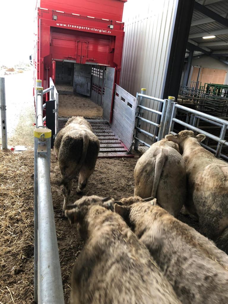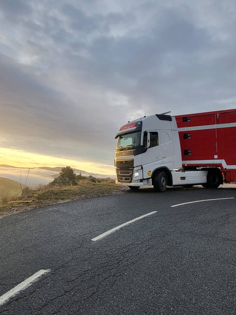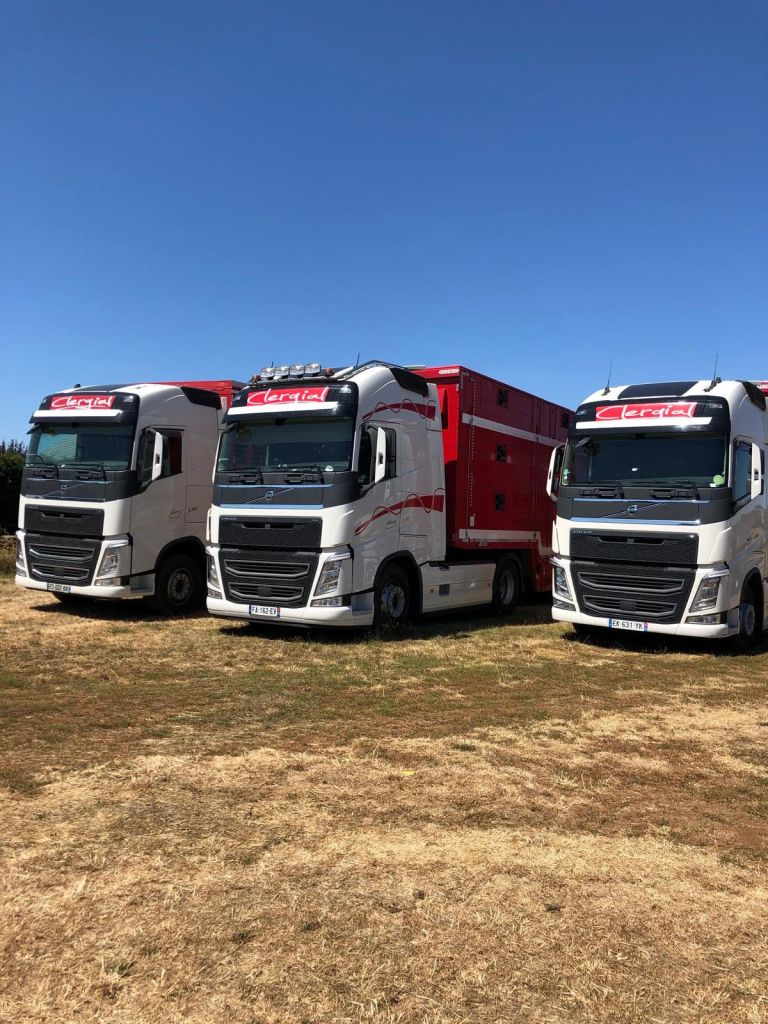 Con el tiempo, hemos sabido adaptarnos al mercado y a la legislación en materia de transporte de animales vivos de larga distancia, teniendo en cuenta tanto el bienestar animal como las exigencias de cada cliente (equipamiento específico de los camiones de transporte de ganado: techos aislados, bebederos, ventiladores, GPS…). Con una flota de 7 camiones-remolque de tres niveles, 5 semirremolques y un equipo dinámico de convoyeros experimentados, transportamos principalmente bovinos. Aseguramos el transporte de terneros recién nacidos, terneros de recría, así como bovinos adultos.