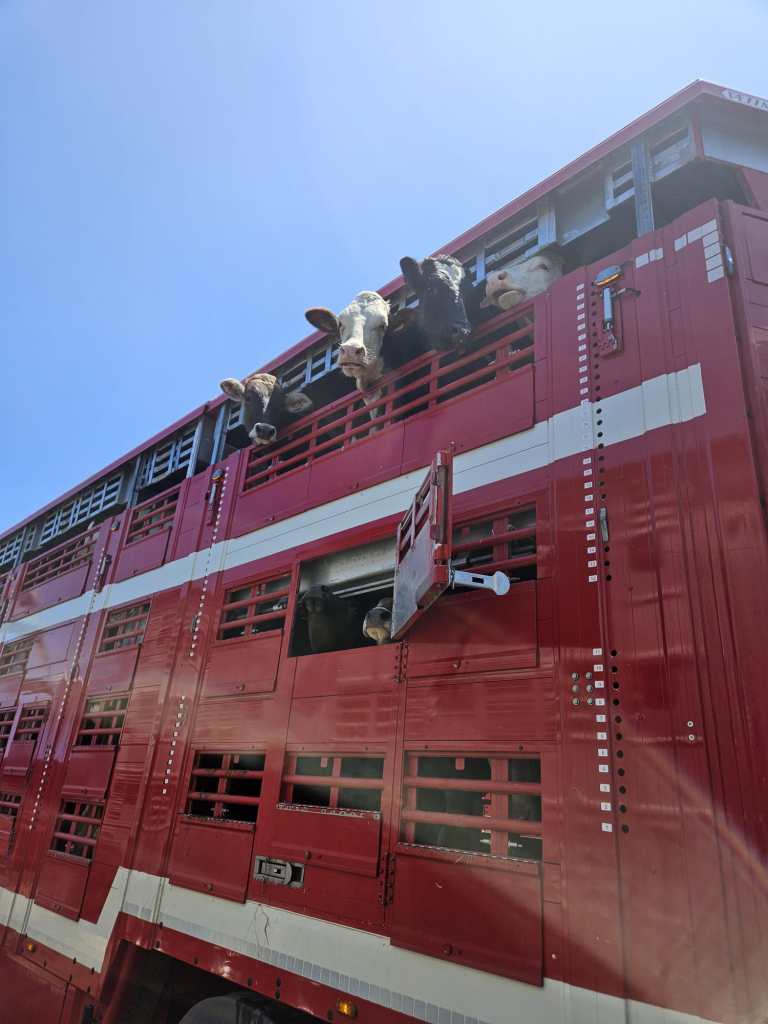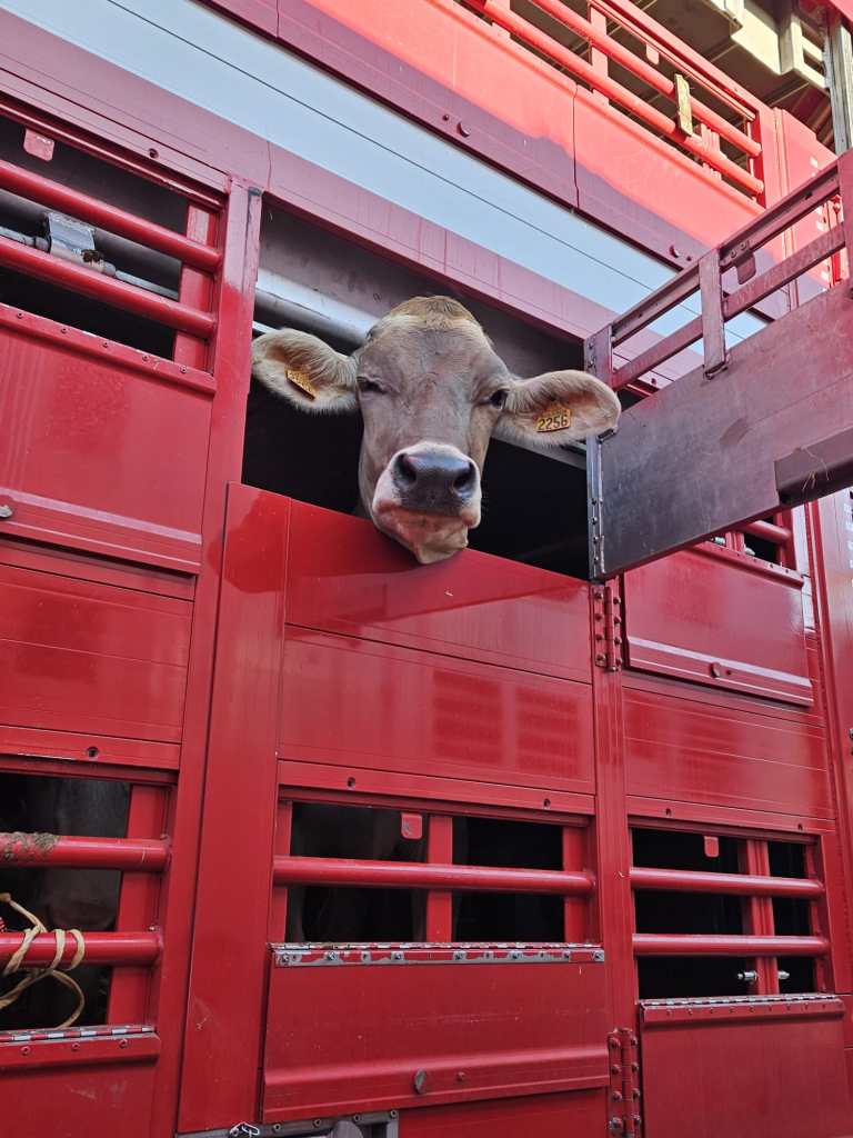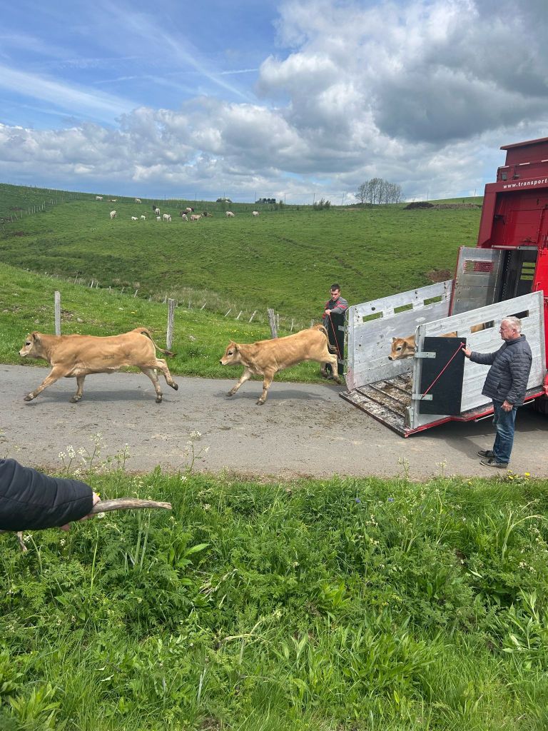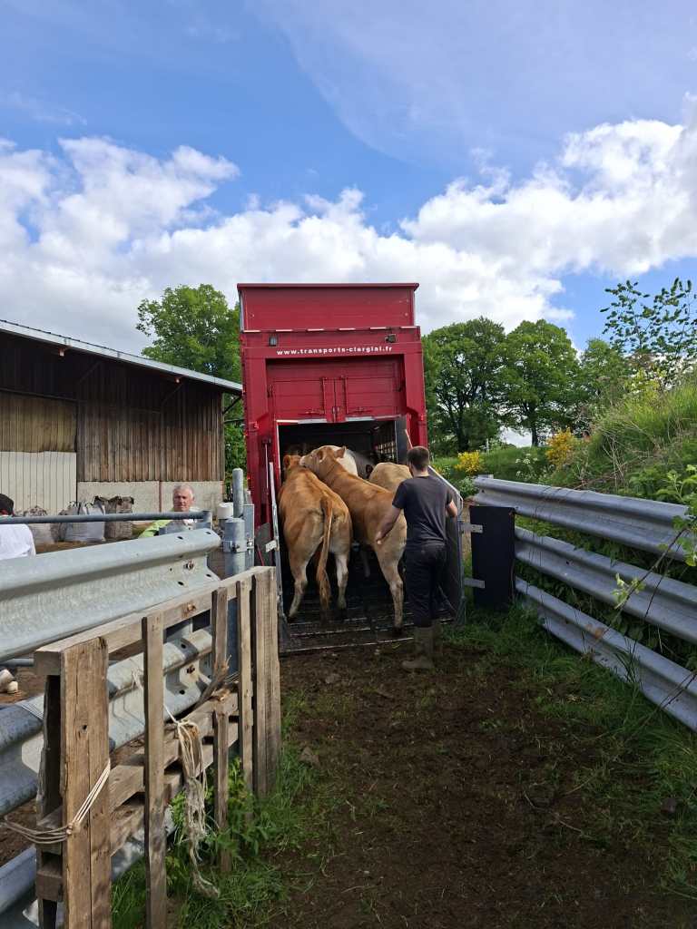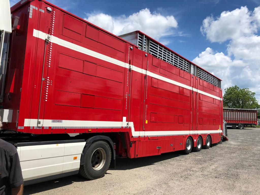 Con el tiempo, hemos sabido adaptarnos al mercado y a la legislación en materia de transporte de animales vivos de larga distancia, teniendo en cuenta tanto el bienestar animal como las exigencias de cada cliente (equipamiento específico de los camiones de transporte de ganado: techos aislados, bebederos, ventiladores, GPS…). Con una flota de 7 camiones-remolque de tres niveles, 5 semirremolques y un equipo dinámico de convoyeros experimentados, transportamos principalmente bovinos. Aseguramos el transporte de terneros recién nacidos, terneros de recría, así como bovinos adultos.