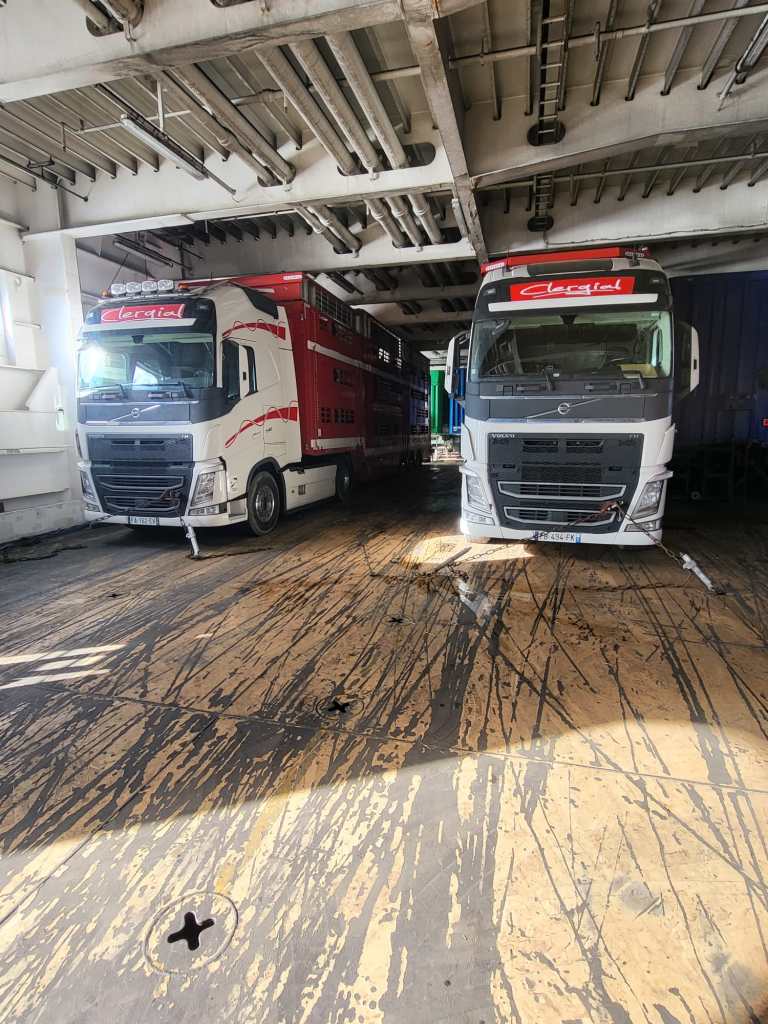 Con regularidad, nuestros conductores transportan bovinos hasta Túnez, realizando la travesía desde Marsella, así como a Marruecos, Turquía, Grecia y Bulgaria.